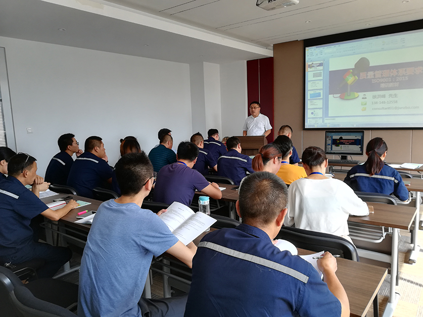 2018年08月16日,来自苏州钧斯质信息科技有限公司的质量管理体系培训讲师,徐洪峰老师,对江苏华铝铝业科技有限公司人员,进行质量管理体系辅导和咨询的相关培训。培训时间:09:00-11:30,12:30-15:00 这次培训共有30名来自公司的各个领导层及各个部门车间负责人的参与。